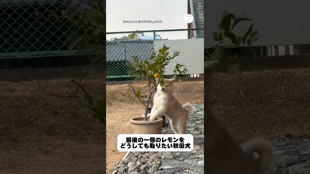 秋田犬の子犬が最後のレモンを取りたい様子の動画です。